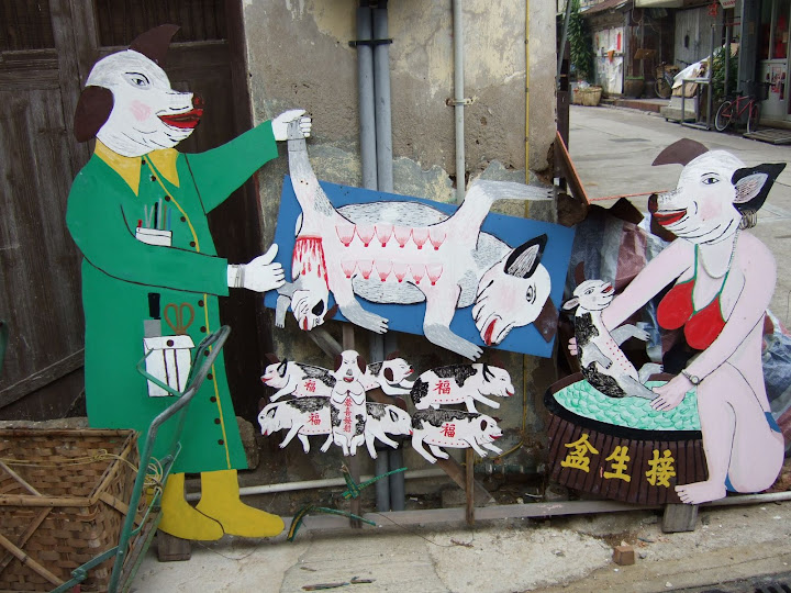這間士多的伯伯十分厲害....用木板畫了好多畫, 張張畫的女性身材都好正@.@